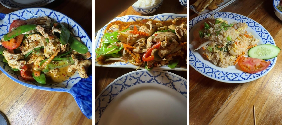 The menu includes clearly marked vegetarian and vegan selections, including popular dishes like green curry with vegetables and the macrobiotic options inspired by wellness principles. Healthy choices are paired with brown rice or fresh vegetables, offering delicious alternatives without compromising authenticity or flavor.